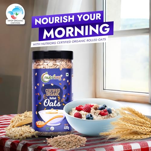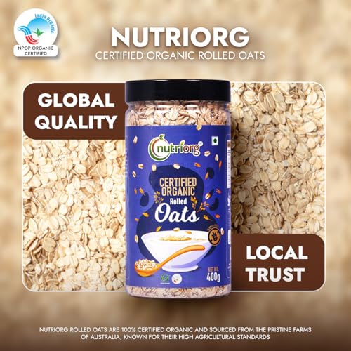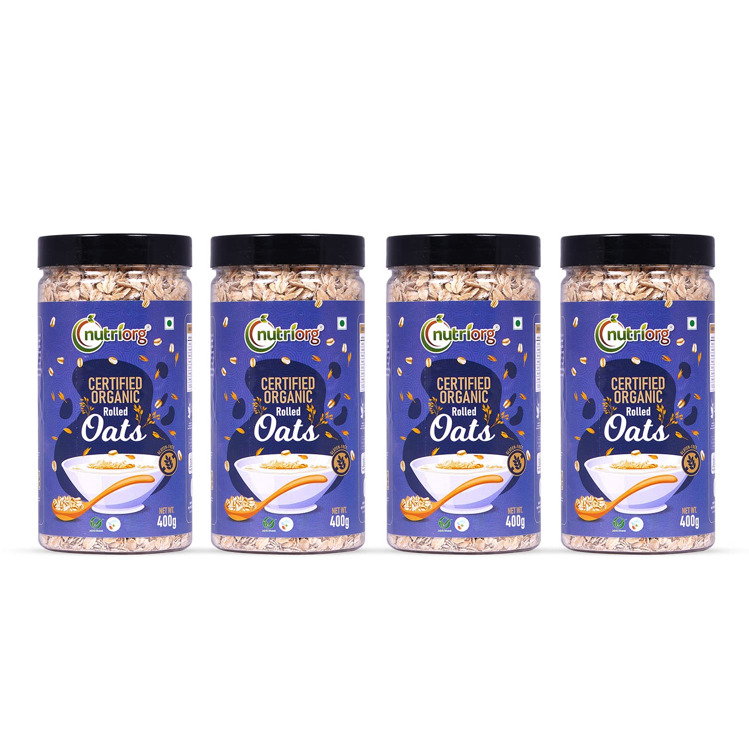 Nutriorg Organic Rolled Oats 1.6 Kg (Pack of 4x400g) | Gluten Free Oats | Wholegrain Oats | High Fiber & Protein-Rich Oats | Ideal for Weight Loss & Breakfast | 100% Natural Oats