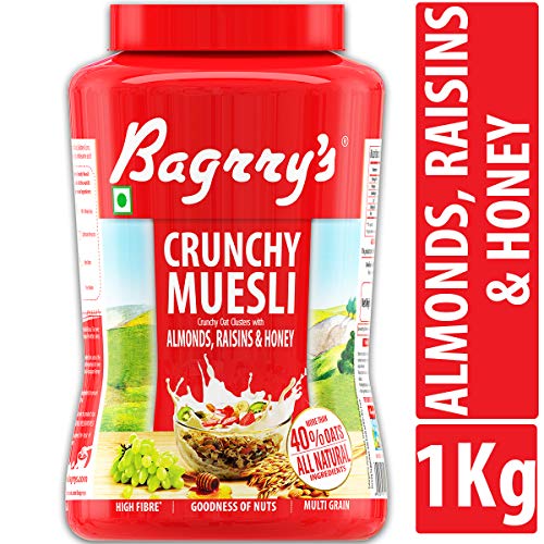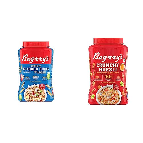 Bagrry's No Added Sugar Crunchy Muesli Jar, 1000g and Bagrry's Crunchy Muesli Crunchy Oat Clusters With Almonds,Raisins & Honey, 1000g