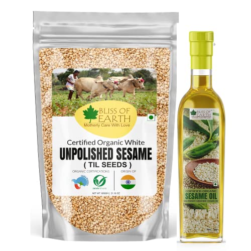 HomeProducts without categoryBliss of Earth Combo Of Organic Unpolished White Sesame Seeds (600gm) For Eating And Organic Sesame Oil (1 Ltr.) for Massage, Cold Pressed & Hexane Free (Pack Of 2)