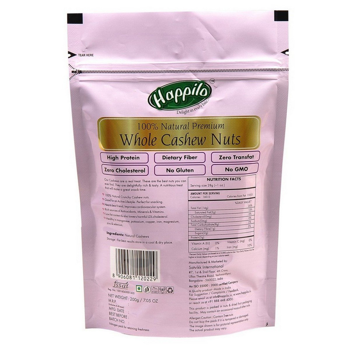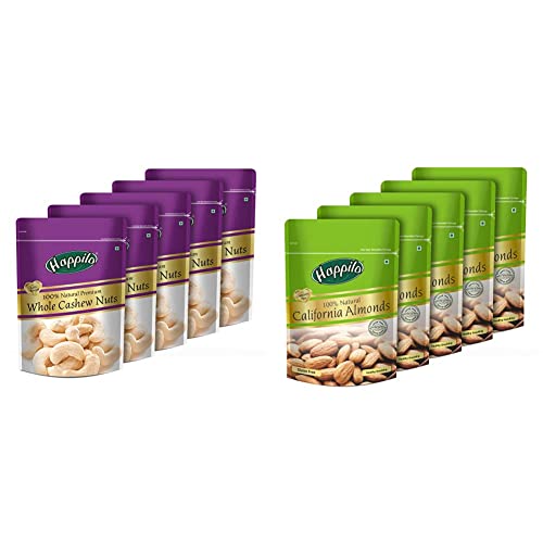 Happilo Premium 100% Natural Whole Cashews, 200g (Pack of 5) and Happilo Premium 100% Natural Californian Almonds, 200g (Pack of 5)