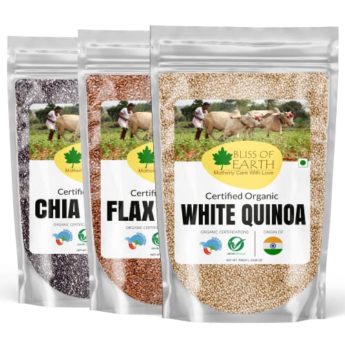 HomeProducts without categoryBliss of Earth Organic Combo Of Raw Chia Seeds 600gm Flax Seed 600gm And White quinoa 700gm For Weight Loss Raw Super Food