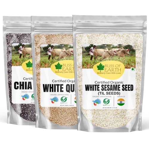Bliss of Earth Combo Of Chia Seeds(600gm), White Sesame Seeds (600gm), Quinoa Seeds (700gm)