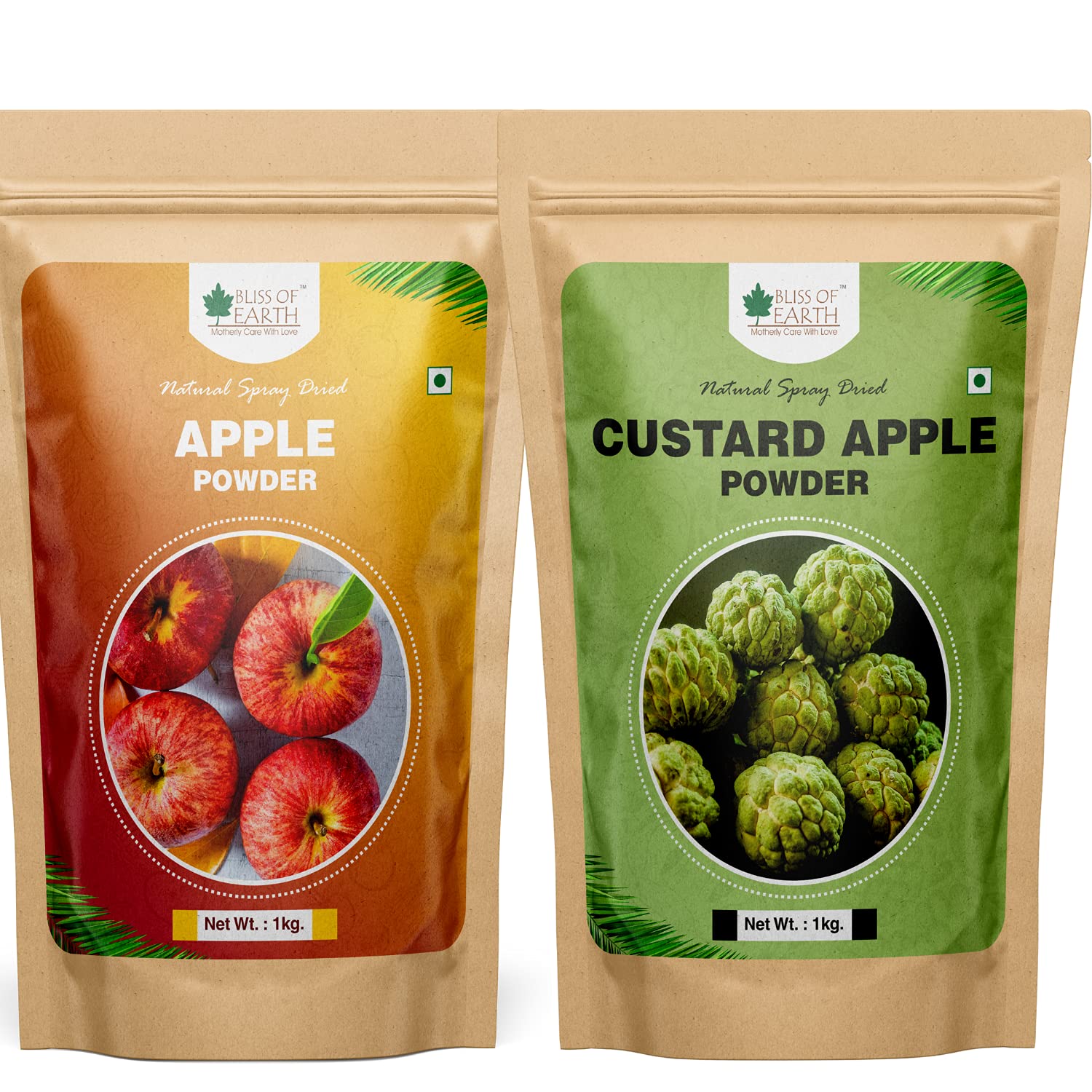 Bliss of Earth Apple Powder1kg +Custard Apple Powder 1kg Natural Spray Dried Great for Smoothi, Cake, Ice Cream Pack of 2