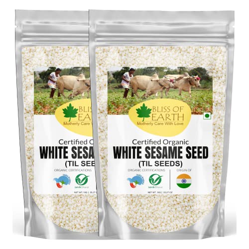 Bliss of Earth Organic Sesame Seeds 2x1kg White For Eating, Raw Til Seeds