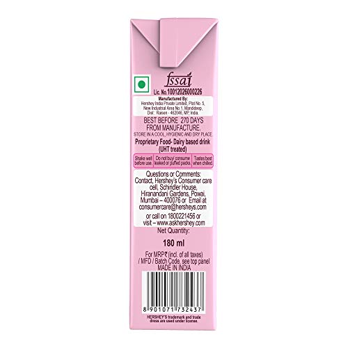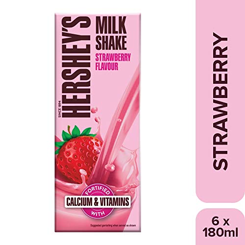 HERSHEY'S Strawberry Flavored Milkshake | Enriched with Calcium | Pack of 12 (6 x 180ml)