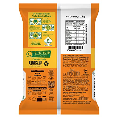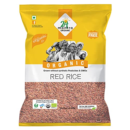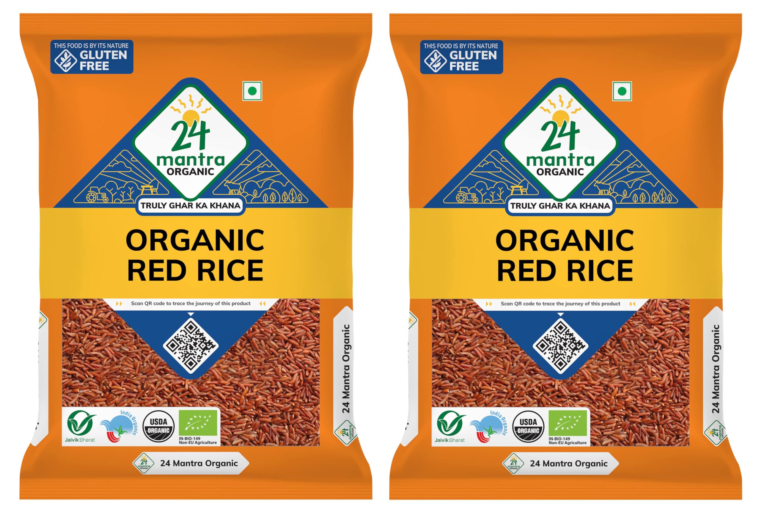 24 Mantra Organic Unpolished Red Rice/Red Chawal/Lal Chawal - 1 Kg,Pack of 2, 100% Organic