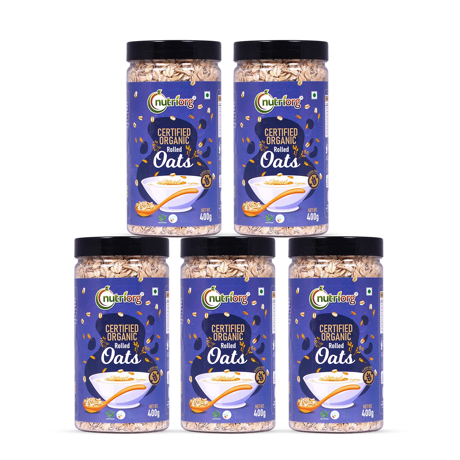 Nutriorg Organic Rolled Oats 2 Kg (Pack of 5x400g) | Gluten Free Oats | Wholegrain Oats | High Fiber & Protein-Rich Oats | Ideal for Weight Loss & Breakfast | 100% Natural Oats