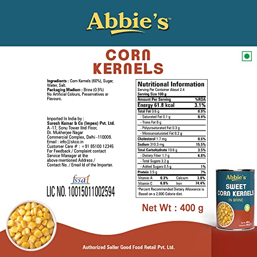 Abbie's Sweet Corn Kernels, 400g (Set of 6)