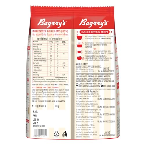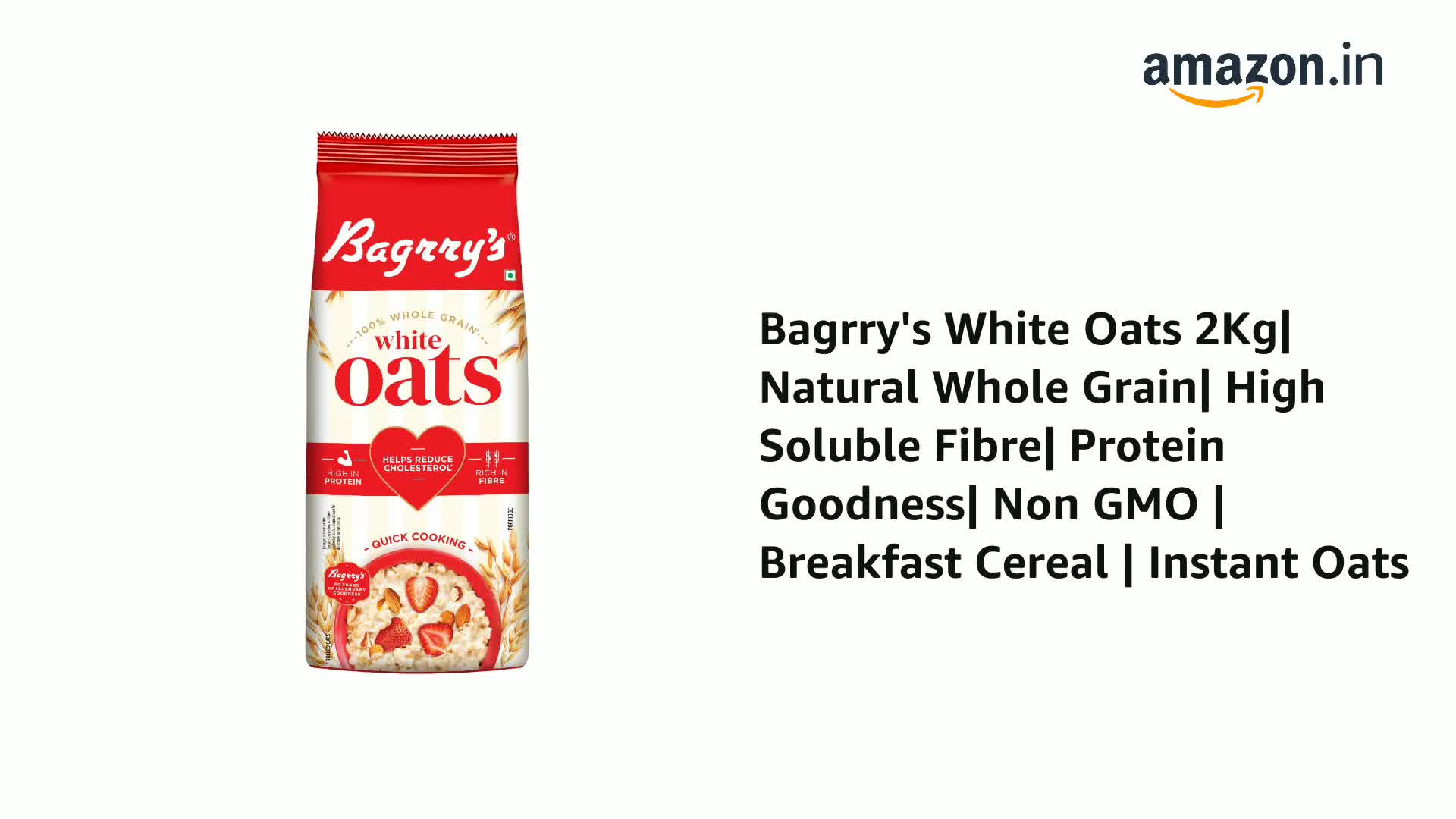 HomeProducts without categoryBagrry's White Oats 2Kg| Natural Whole Grain| High Soluble Fibre| Protein Goodness| Non GMO | Breakfast Cereal | Instant Oats