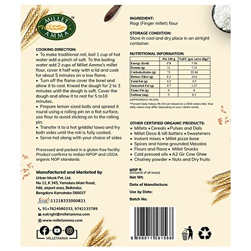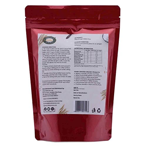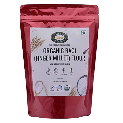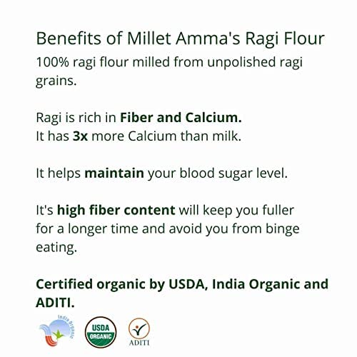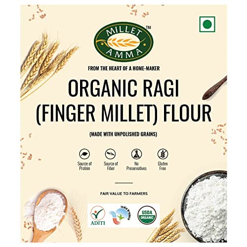 HomeProducts without categoryMillet Amma CERTIFIED ORGANIC Ragi (Finger Millet) Flour | 2 Kg (1 kg x 2 Packs) | Made with Unpolished Millet | Gluten free, Rich in Calcium | Suitable for Multiple Millet Recipes (Dosa, Roti)