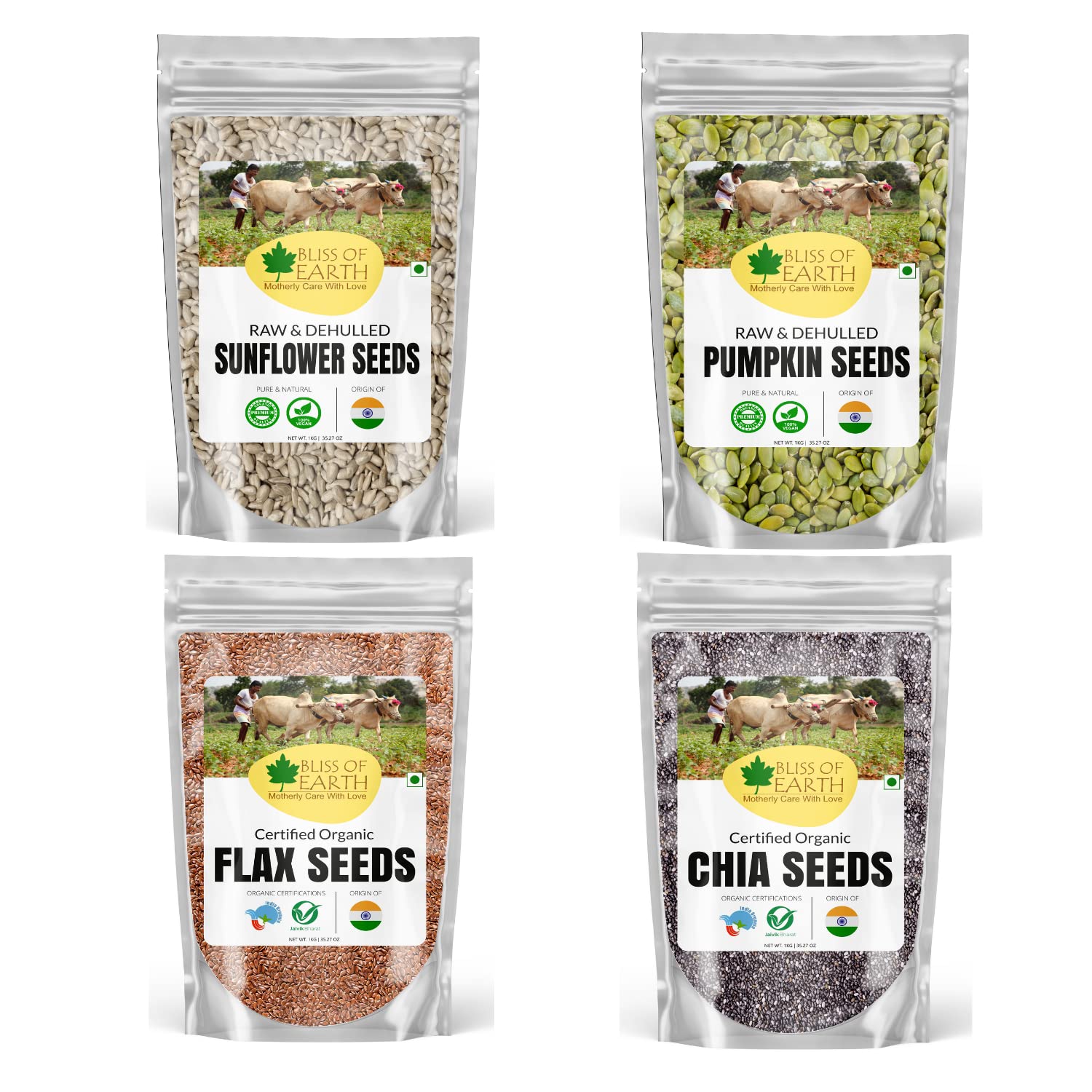 Bliss of Earth Organic Raw Chia Seed,Flax Seed,Pumpkin Seed And Sunflower Seed For Weight Loss, Raw Super Food 1kg Each