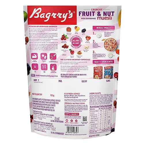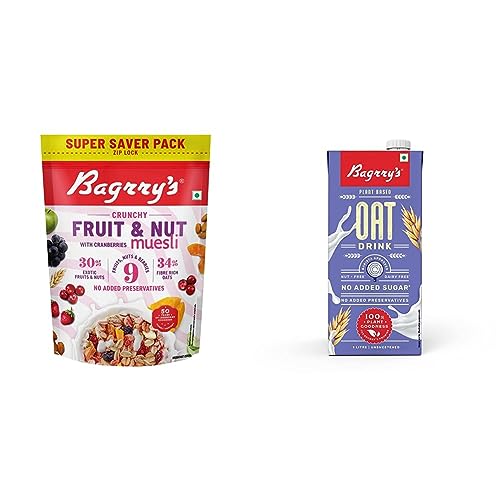 Bagrrys Plant Based Almond Drink 1l | Vegan | Gluten Free| Dairy free | Plant based milk | No Preservatives | Breakfast Cereals & Bagrry's Crunchy Muesli with 30% Fruit & Nut 750gm