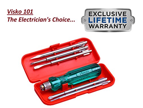 With flat and Phillips tips this screwdriver set lets you perform most electrical electronic and mechanical repair jobs without looking for other instruments. This is a handy tool to have in the house if you like doing small repair and maintenance jobs by yourself. Tester You can use this screwdriver as an electrical tester while performing electrical repair work to check if an electrical device plug point or a wire is carrying current or not. Flat and Phillips Tips This set comes with flat and Phillips screwdriver tips that can be used for a wide range of tasks. They can be used for repairing devices and gadgets like calculators computer accessories laptops and other items commonly found in most homes.