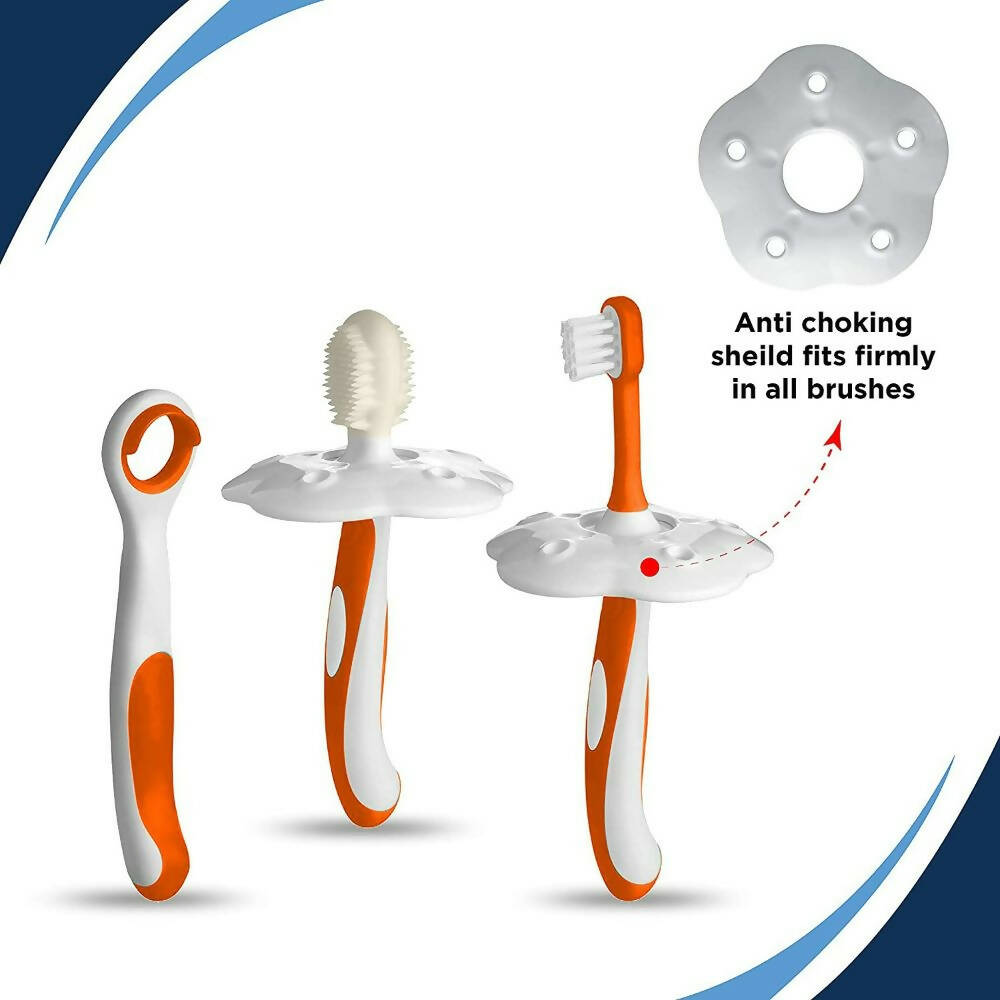 Luvlap Baby Oral Hygiene ComboAbout the Product:silicone heads and fine soft bristlesnon-slip handles with a soft gripBaby Training ToothbrushColor: White/OrangeLegal Disclaimer: Product images are for illustrative purposes only. Images/packaging/ labels may vary from time to time due to changes made by the man