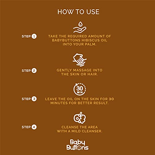 The BabyButtons hibiscus Hair Oil Contains Hibiscus fresh coconut oil Amla Black seed oil and tulsi. BabyButtons hibiscus hair oil is packed full with natural nutrients and possessing a truly unique formula this bespoke Amla Black seed oil basil(tulsi) and Hibiscus extracts a wealth of intensive benefits for both your hair and scalp. Able to help your scalp feel nourished and no longer itchy or irritated and volume to your hair. 100% Natural With a Unique Formula Made using only organic natural ingredients including Hibiscus extractsAmla Black seed oil basil(tulsi)jungle geranium oil Woodapplepiper betle coconut milk coconut oilmukkutti indigo and cumin seed oil. Free from harmful chemiccolours or fragrance this unique oil . And it's 100% vegan friendly too.