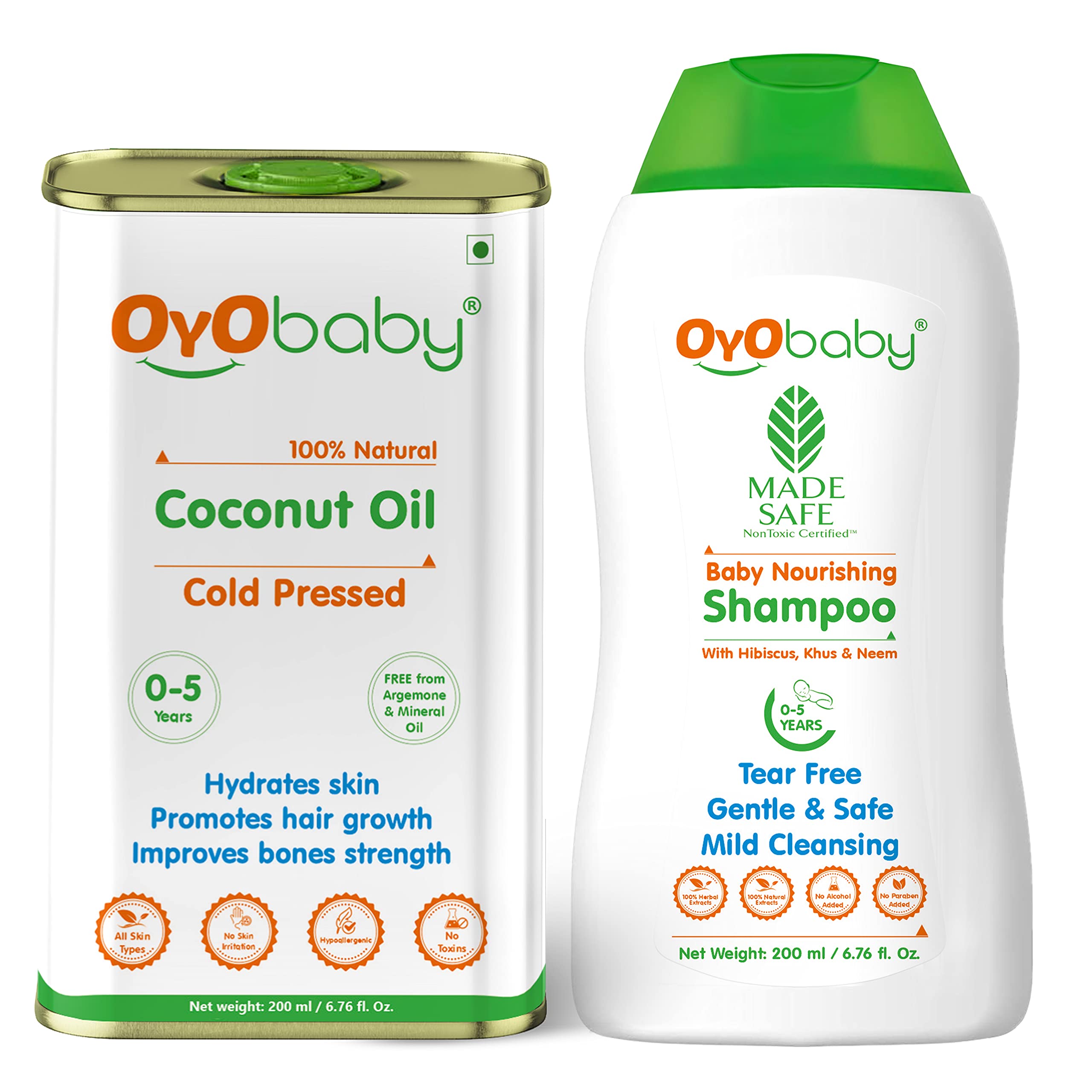 OYO BABY New Born Combo Baby No Tears Baby Shampoo for Newborn Babies and Extra Virgin Coconut oil for baby massage skin and Hair (200ml Each)
