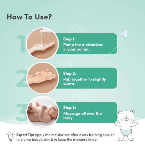 • SAFE FOR ALL SKIN TYPES: To ensure the maximum safety of your lil one this baby lotion is completely free of all kinds of toxins & is safe for application on all skin types right from the first day!