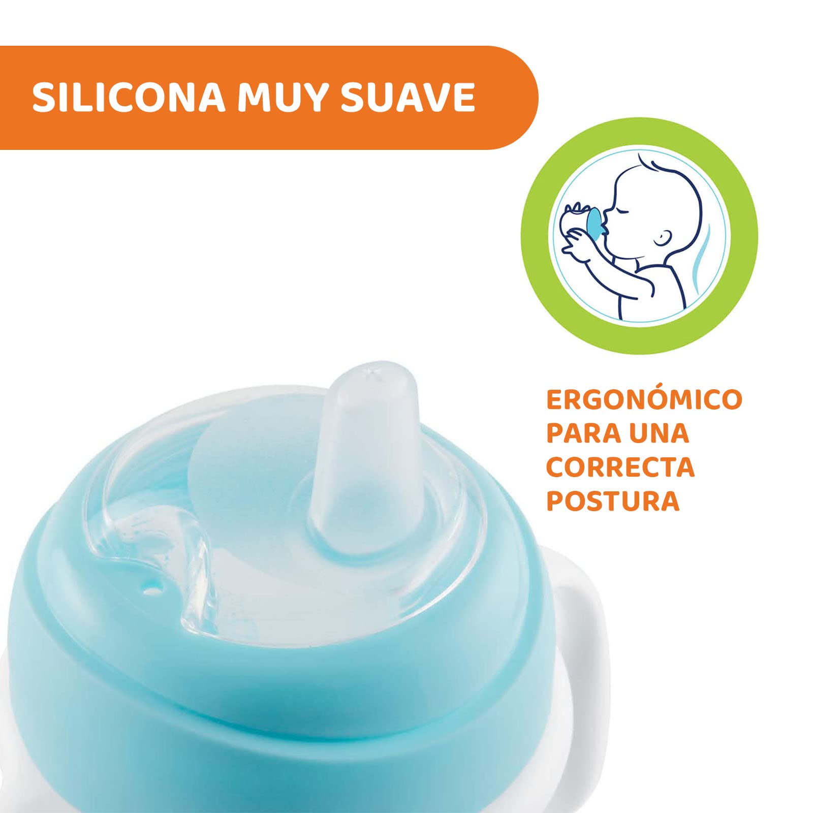 Extra-soft Ergonomic Silicone Spout: The Chicco baby transition cup has a super-soft and flexible silicone spout. It ensures maximum gentleness on the baby's gums. The Spout is positioned near the edge and promotes a correct posture while he enjoys his dr