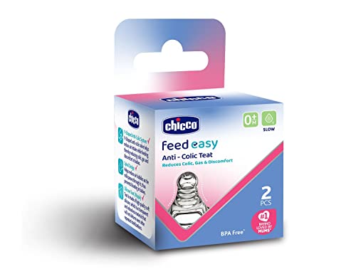 Chicco Feed Easy Anti-Colic Teat for Babies 0+ Months | V-Shaped Anti-Colic System to Prevent Colic, Gas & Discomfort | Slow Flow, Soft Silicon, Spiral Design Reduces Air Bubbles