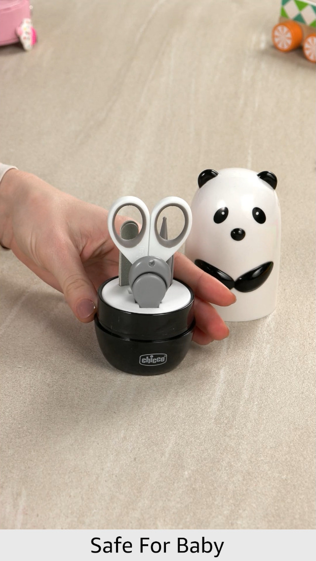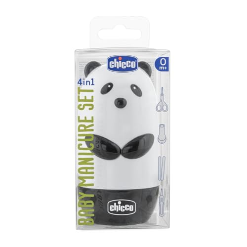 Chicco 4-in-1 Baby Manicure Set - Baby Nail Scissor, Nail Cutter, Tweezer and Filer | Baby Grooming Kit | Cute Panda Design, Multicolor