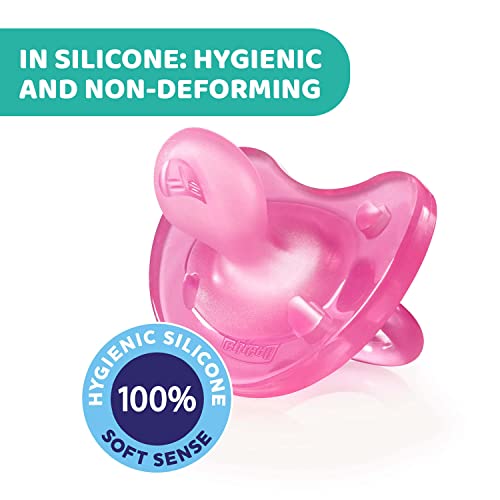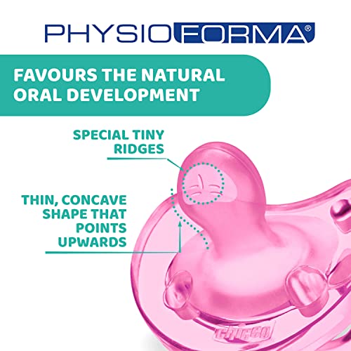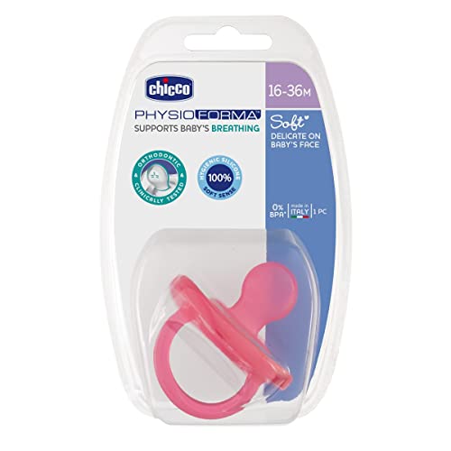 Chicco Physio Soft Baby Soother with Unique Shape to Support Psychological Breathing, Teether & Pacifier for Toddlers, BPA Free, 16-36M (Pink)