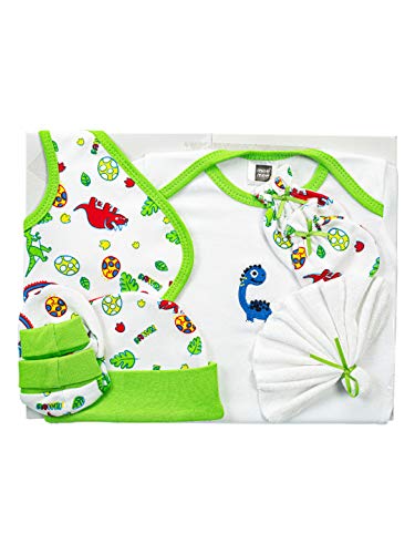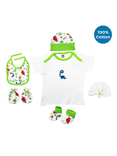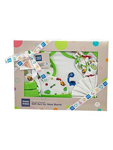 HomeBabyBath & SkinGift SetsMee Mee Pampering Gift Set for New Born Baby: Set of 6 Pieces | 100% Cotton | T-Shirt | Bib | Wahcloth | Hat | Booties | Mittens | (Green)