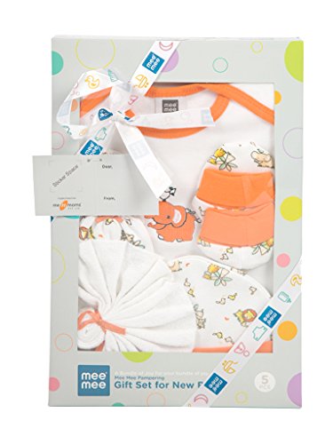 Babies look cute in everything! They also make everything look cute. Mee Mee Pampering Gift Set Hamper for New Borns will make any proud parent even prouder. Available in brightly coloured eye-catching and fashionable options this practical gift set consists of every wardrobe staple a baby could ever need. Or desire. Made of premium quality 100% soft cotton material the clothes are perfect for long all-day wear and are easy to clean. To top it off the baby gift set is packed in a beautiful ribbon wrapped box that is sure to delight any parent. Just add a personalized hand-written note congratulating the proud parents and wishing them the best along with this ideal gift