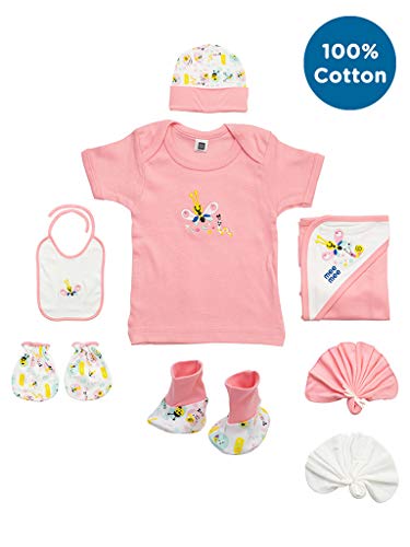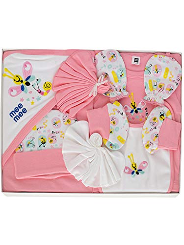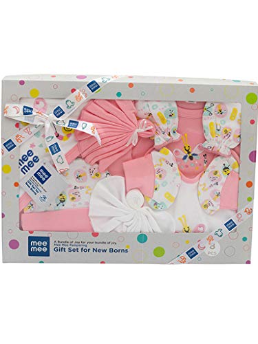 HomeBabyBath & SkinGift SetsMee Mee New Born Baby Gift Set | Soft Cotton Clothing Essentials for Infants/Baby Girls, Boys | Baby Shower Clothing Hamper (7 Pieces, Pink)|Perfect Gift for New Born Baby
