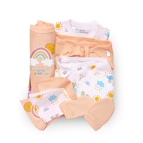 Wondering what to gift to a newborn baby? SuperBottoms brings you the perfect baby gift set for new born! It is ideal for babies from day 1 to 3 months. Contains thoughtfully handpicked 11 unisex items 3 Reusable Baby Wipes a Bib a pair of Mittens and Booties each a Beanie a Swaddle and a Jhabla. Indeed all the products are designed with the gentlest care and the greatest love by a team of moms. They are made with 100% Cotton totally safe for the newborns delicate skin. Ideal gift for newborn baby boy and girl or preparing for your own newborn's arrival because every baby deserves the best from day one! What it contains? Jhabla - 1 Wipes - 3 Bib - 1 Beanie - 1 Swaddle - 1 Mittens - 1 pair Booties - 1 pair Nappies - 2`