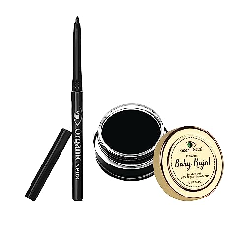 Introducing the Organic Netra and Pure Black Combo Set designed to enhance the beauty of your eyes naturally. This remarkable combo includes the Organic Netra and the Organic Netra Pure Black both formulated with no harmful chemic. The Organic Netra (8g) is a gentle and soothing alternative to traditional perfect for sensitive eyes. Enriched with organic ingredients it nourishes your eyes while defining them with a subtle smudge-proof finish. The Organic Netra Pure Black (20g) provides intense pigmentation and a dramatic look. Its long-lasting formula glides effortlessly allowing you to create precise lines and bold captivating eyes. Experience the enchantment of naturally beautiful eyes with this exclusive combo set.
