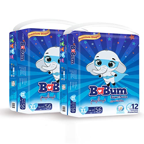 Babum Premium Diaper | XL | 112 count | Wetness Indicator| up to 12 hours Absorption |14-17 Kg | Super Soft Diaper