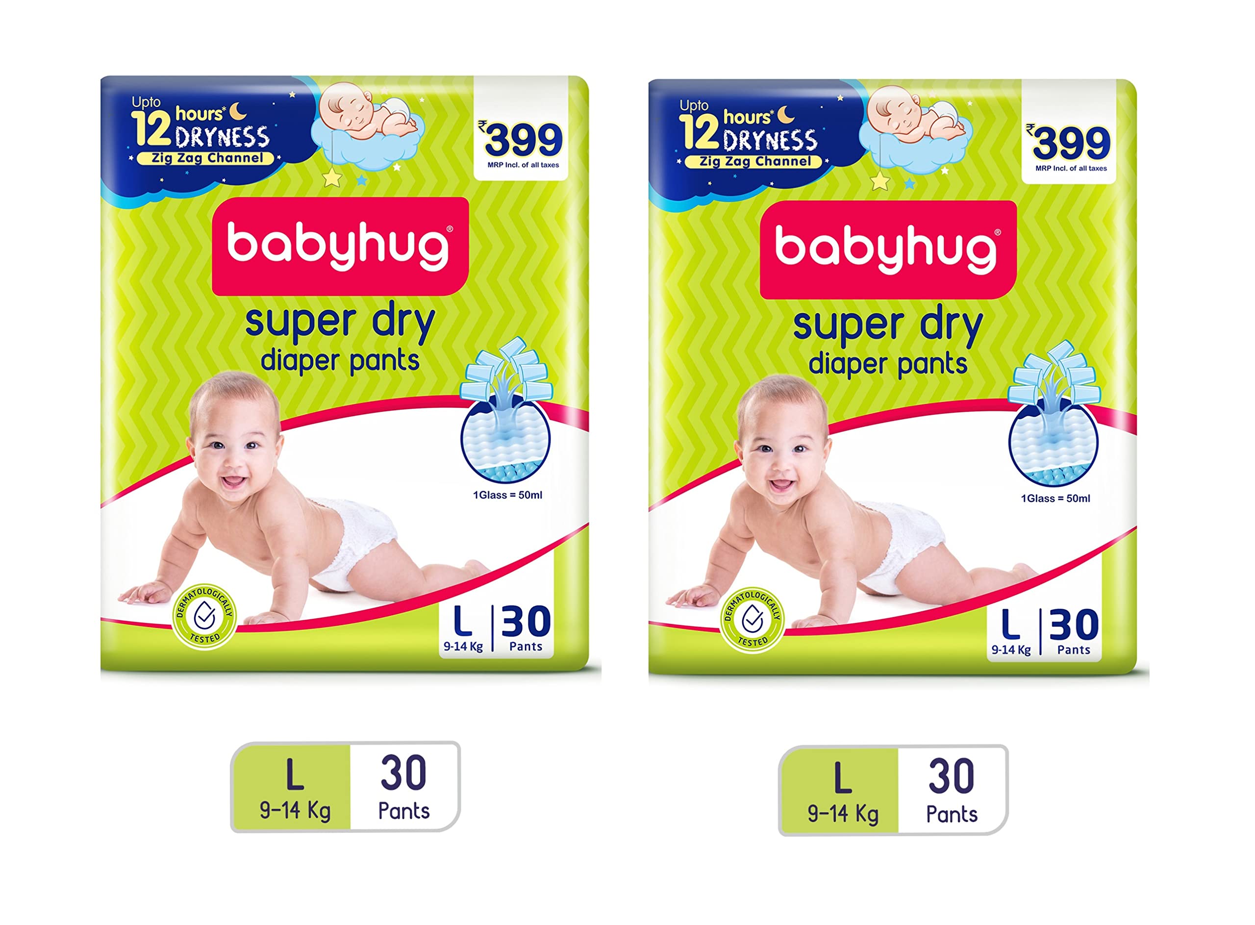 babyhug Unisex Super Dry Pant Style Diapers Large - 30 Pieces Pack Of 2