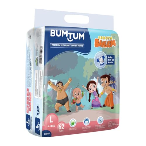 Bumtum Chota Bheem Large Baby Diaper Pants, 148 Count, Leakage Protection Infused With Aloe Vera, Cottony Soft High Absorb Technology