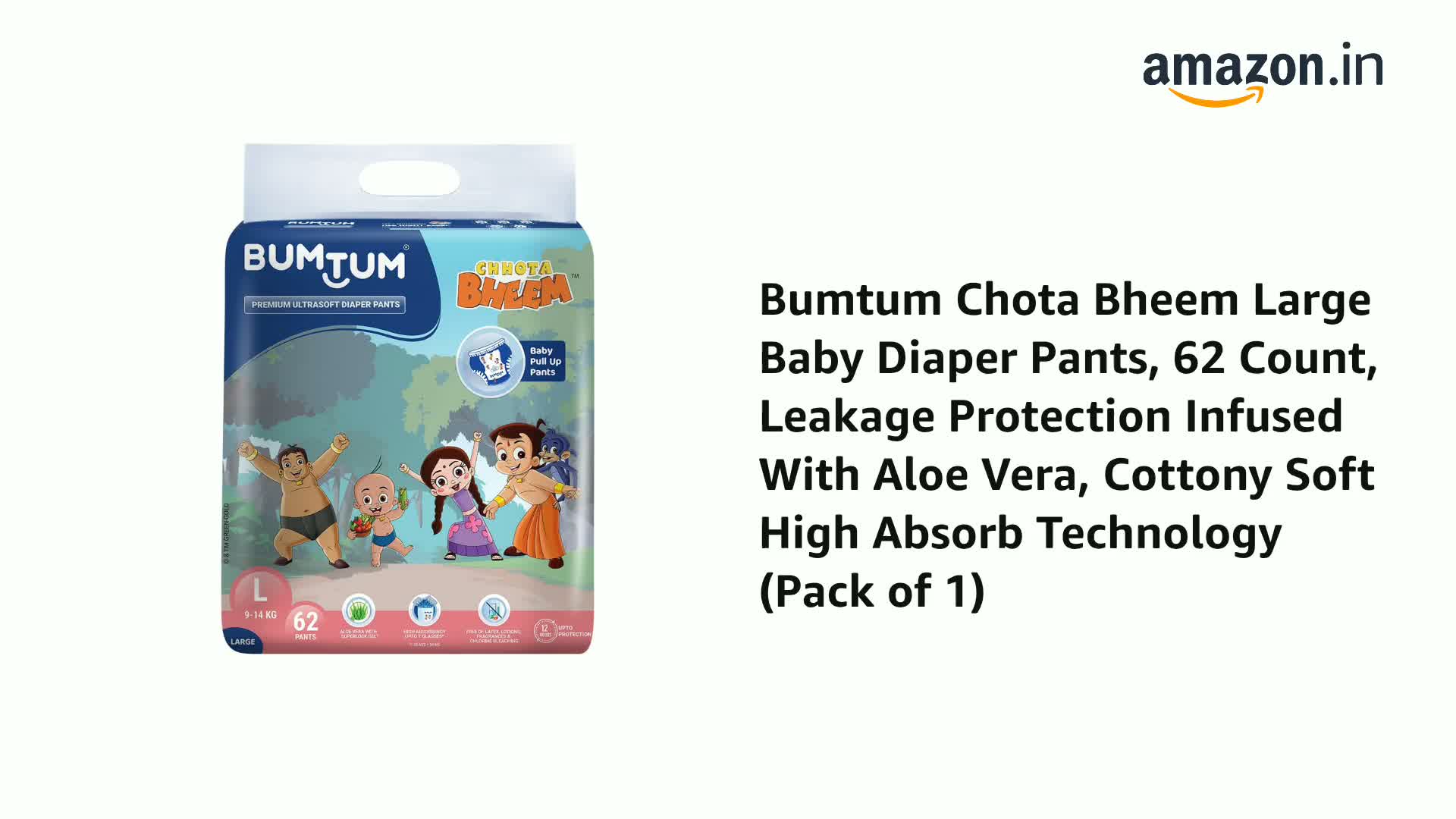 Bumtum Chota Bheem Large/l Size Baby Diaper Pants 148 Count Leakage Protection Infused With Aloe Vera Cottony Soft High Absorb Technology