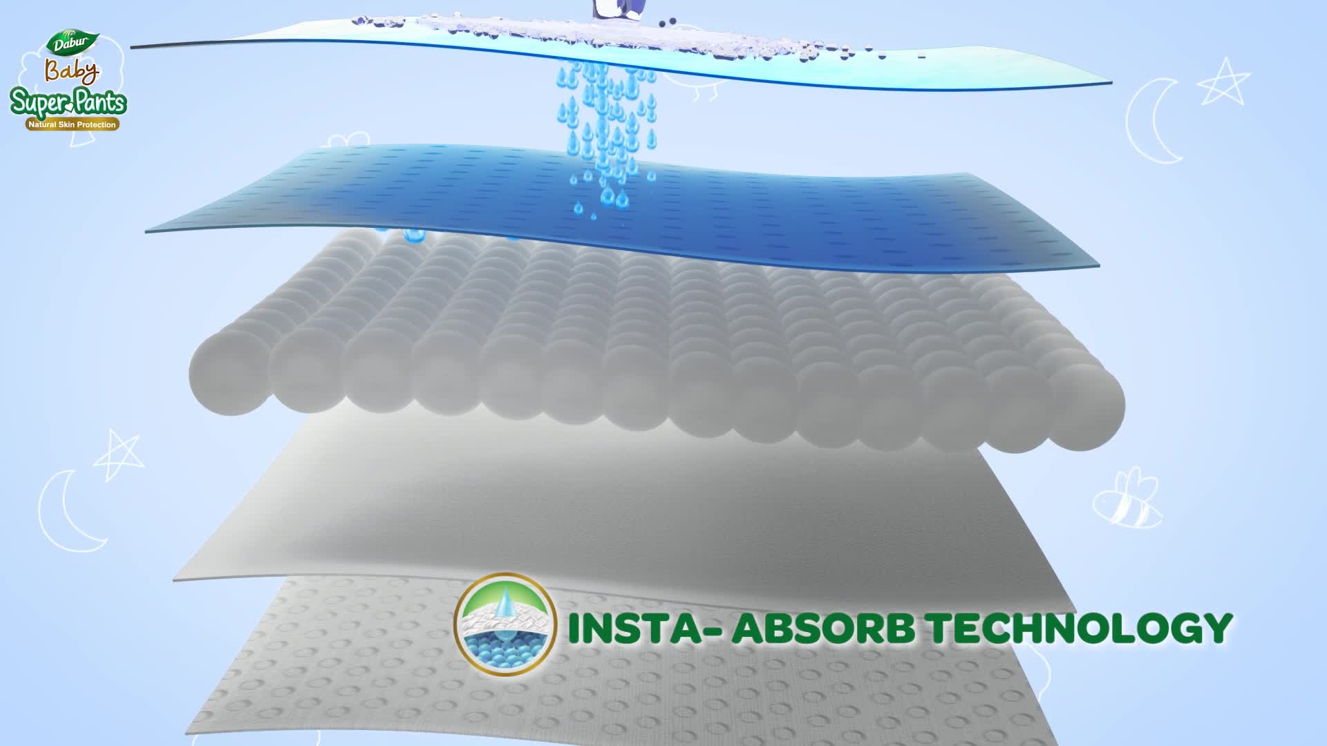 • Natural Skin Protection – Dabur Baby Super Pants is a natural skin protection diaper exclusively made for your baby’s sensitive skin