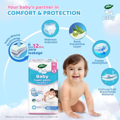 • Natural Skin Protection – Dabur Baby Super Pants is a natural skin protection diaper exclusively made for your babyâ€s sensitive skin