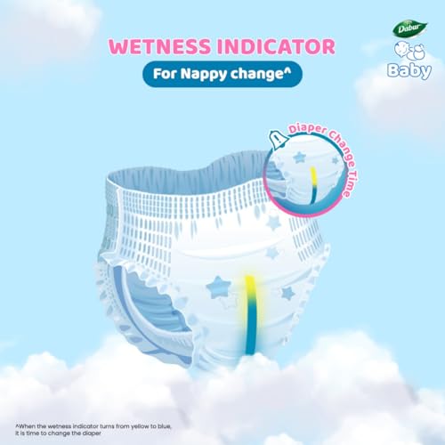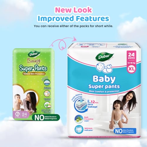 Dabur Baby Super Pants have been specially designed for baby’s delicate skin to offer leakproof skin protection. It is infused with the goodness of natural ingredients such as Aloe-vera Shea butter & Vitamin E to keep redness & rashes away. The diaper pants are designed with new five layer Insta Absorb technology for high absorbency & 12 hrs zero leakage that helps baby get a sound sleep all night long. The magic gel locks wetness & keeps baby’s skin dry and comfortable overnight. The diaper enables a comfortable fit with its 360 stretch fit design for easy wear & movement. Made of soft breathable fabric it ensures proper air circulation. Dabur Baby Super Pants are available in different sizes (small medium large XL & XXL) as per the weight of the baby.
