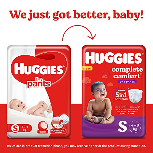 Huggies Complete ComfortTM Dry Pants provides 5 benefits in 1 diaper. With India's 1st Pants with Bubble Bed technology Huggies provides a soft inner bubble layer that wraps your baby in softness. Made from air friendly material our diaper pants help your baby's skin to breathe. Up to 10 Hours of Overnight Absorption allows you and your baby to have a comfortable sleep. Double leak guard provides extra padding to fight leakage and 360 degree Soft fit waistband ensures a snug fit for your baby. Our Pant style diapers are available in all sizes from Newborn/XS S M L XL and XXL sizes.
