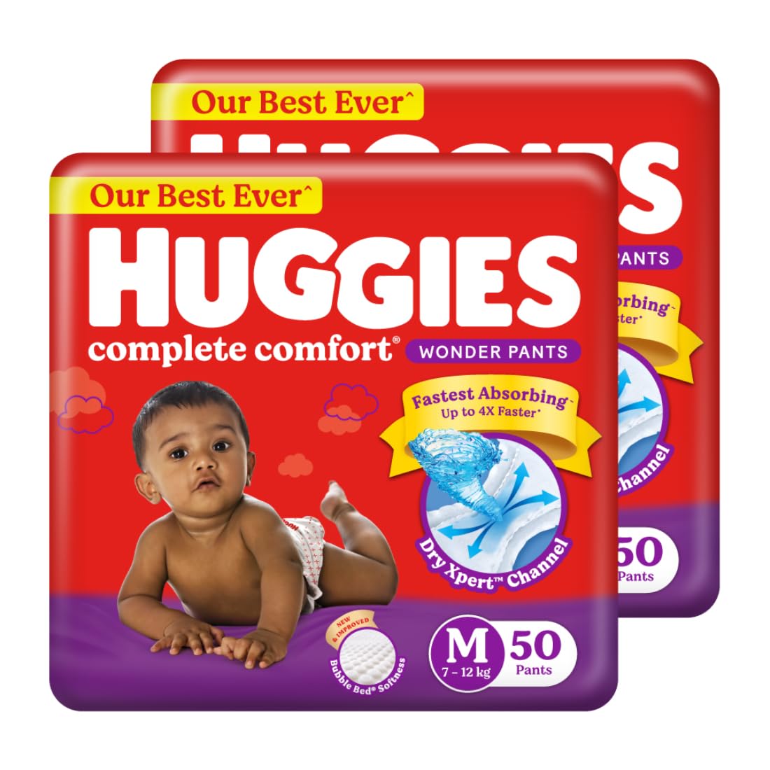 Introducing the New and Improved Huggies Complete Comfort Wonder Pants - India's Fastest Absorbing Diaper. Designed to provide maximum comfort and absorbency for your little one these are our best ever diaper pants. With our patented Dry Xpert technology that spreads urine evenly across the diaper - these diaper pants are now up to 4x Faster in absorbing urine ensuring your baby stays dry and comfortable. But that's not all! Our diaper pants also feature India's 1st Bubble Bed technology that provides a soft inner bubble layer to wrap your baby in ultimate softness. Made from air-friendly breathable material these pants help your baby's skin breathe keeping them comfortable throughout the day protecting them from rashes. And with up to 12 hours of overnight absorption you can both have a peaceful night's sleep. We understand how important it is to keep your baby dry at all times which is why our diaper pants come with double leak guard protection. This extra padding helps prevent thigh leakage ensuring there are no messes to deal with. Choose from a range of sizes of our Pant Style Diapers - including diapers New born /XS size diapers S size (small) diapers M size (medium) diapers L size (large) diapers XL size (extra large) diapers XXL size (double extra large) and diapers XXXL size (triple extra large) - making it suitable for babies of all ages and sizes. Trust Huggies Complete Comfort Wonder Pants for complete care and protection for your little one. Add the new and improved Huggies Complete Comfort Wonder Pants to your shopping cart today! Available on Amazon.