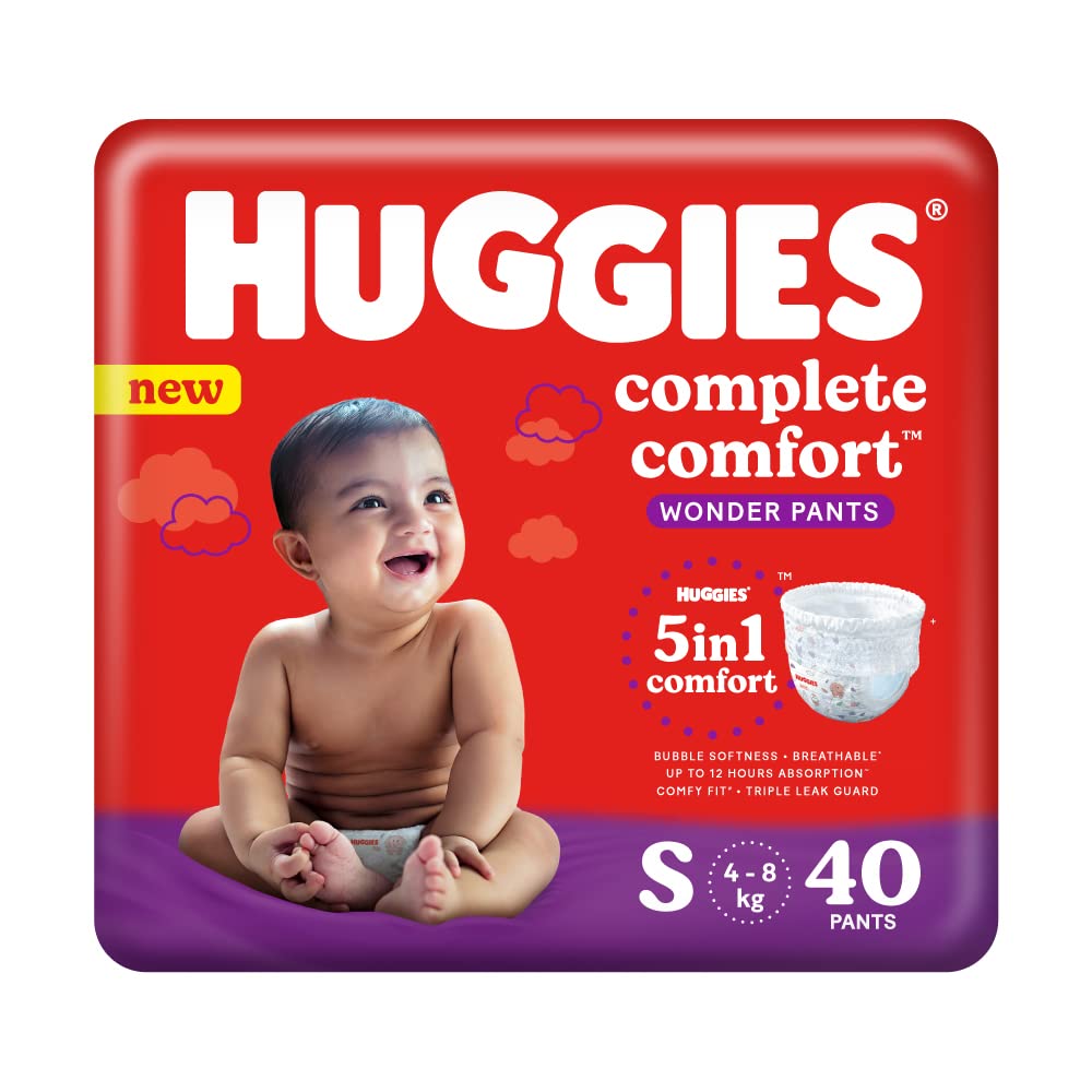 Huggies Complete Comfort Wonder Pants Small (S) Size Baby Diaper Pants, 40 count, with 5 in 1 Comfort