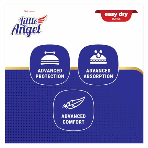 Little angel easy dry pants are made specially for the Indian baby. With first in category features like wetness indicator. Extra thin core designed to give superior absorbency and keep your little angel’s skin dry all day long. It is made with ultra-soft air fresh material and a 360degree soft elastic band to keep your little one’s delicate skin protected from diaper rashes.• ADVANCED PROTECTION – • ADVANCED ABSORPTION – Quick Absorption – • Better Absorption – • ADVACED COMFORT – 360degree Waistband.