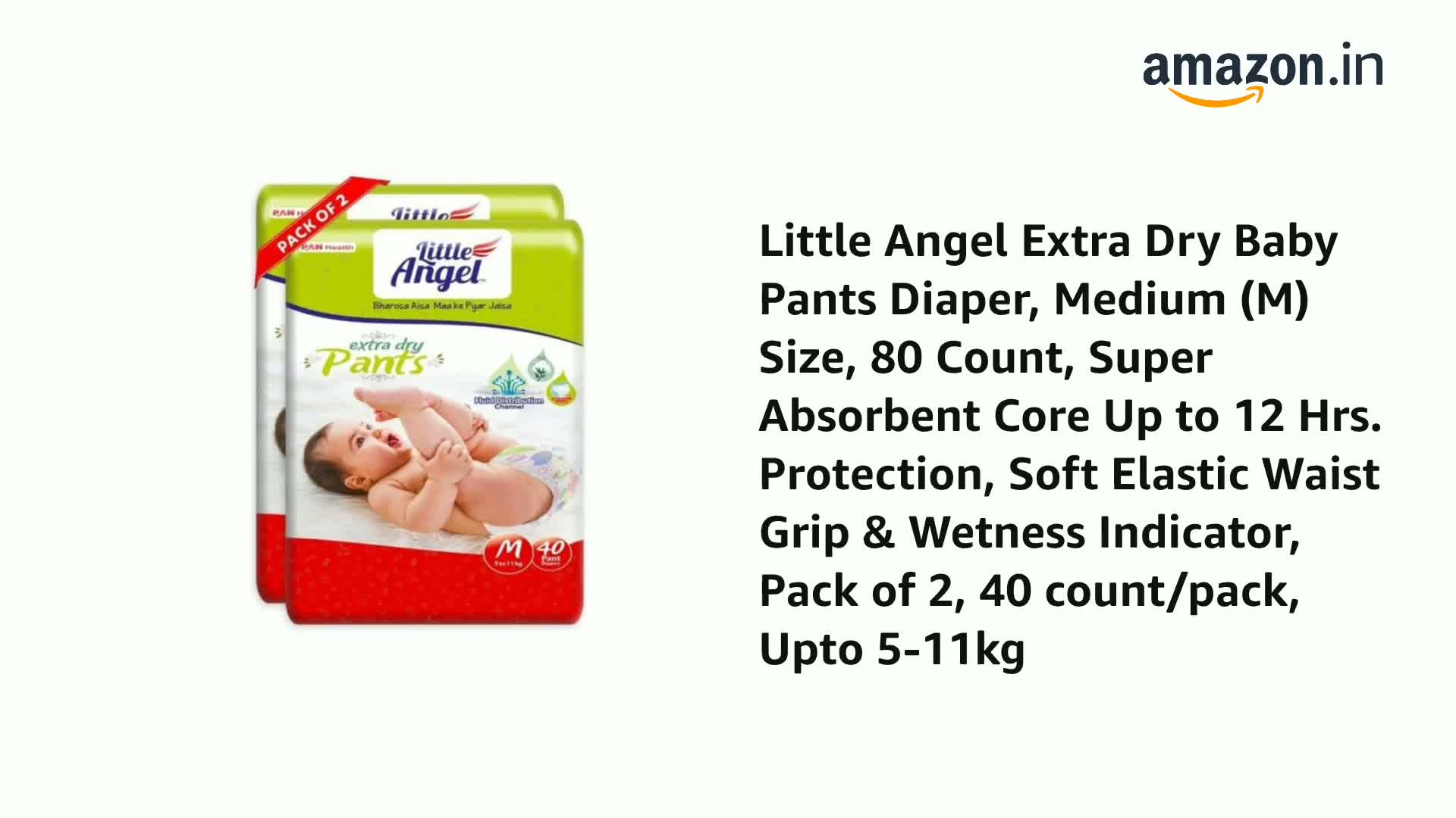 Little Angel Extra Dry Baby Pants Diaper, Medium (M) Size, 80 Count, Super Absorbent Core Up to 12 Hrs. Protection, Soft Elastic Waist Grip & Wetness Indicator, Pack of 2, 40 count/pack, Upto 5-11kg