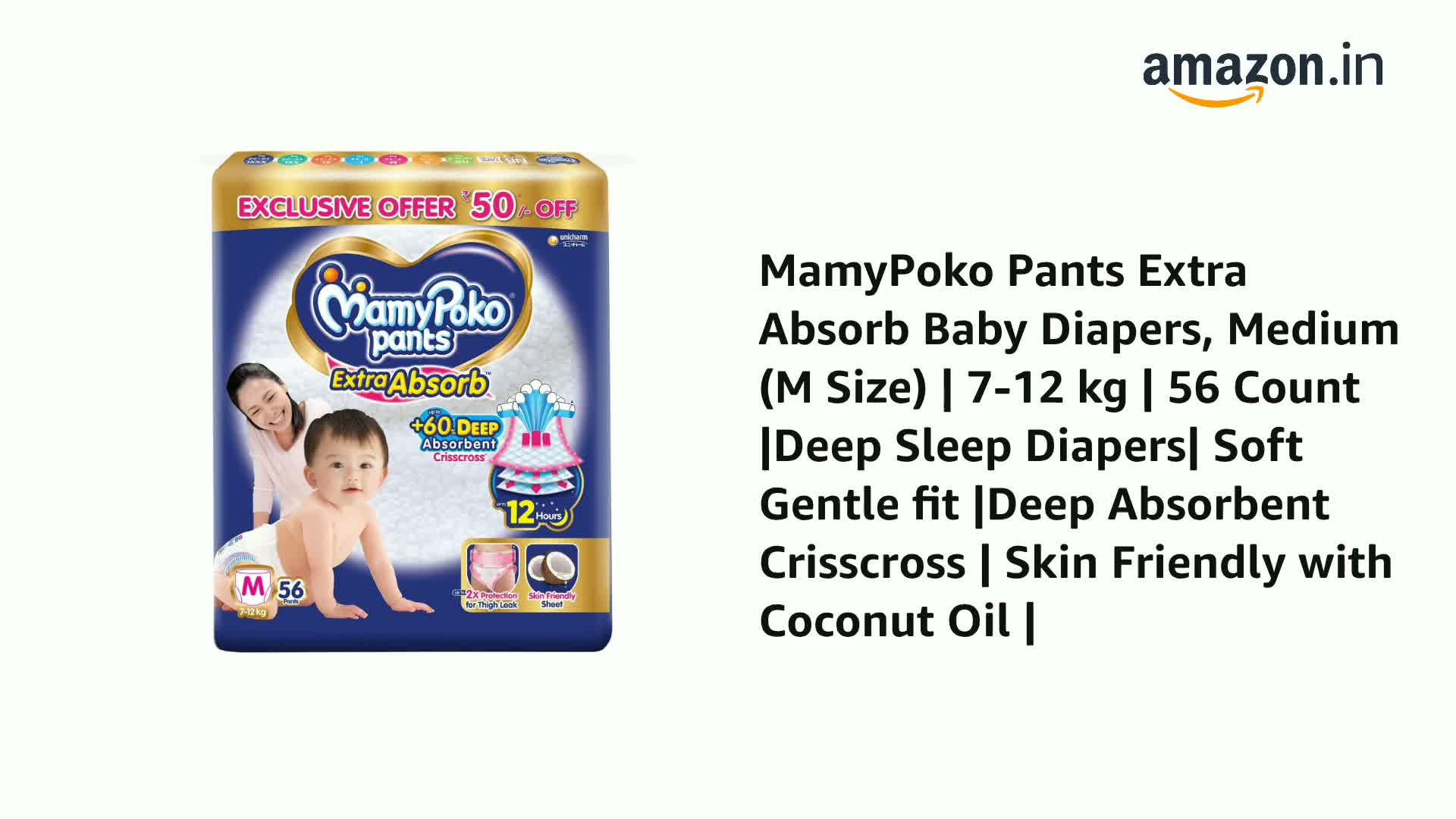 Best 12 hours absorbent pants ever in MamyPoko product history in India has +60% Deep Absorbent CrissCross with extra 3rd layer that absorbs urine deeply and provides 2x protection for thigh leakage without sogginess whole night so baby & mother can sleep deeply whole night".