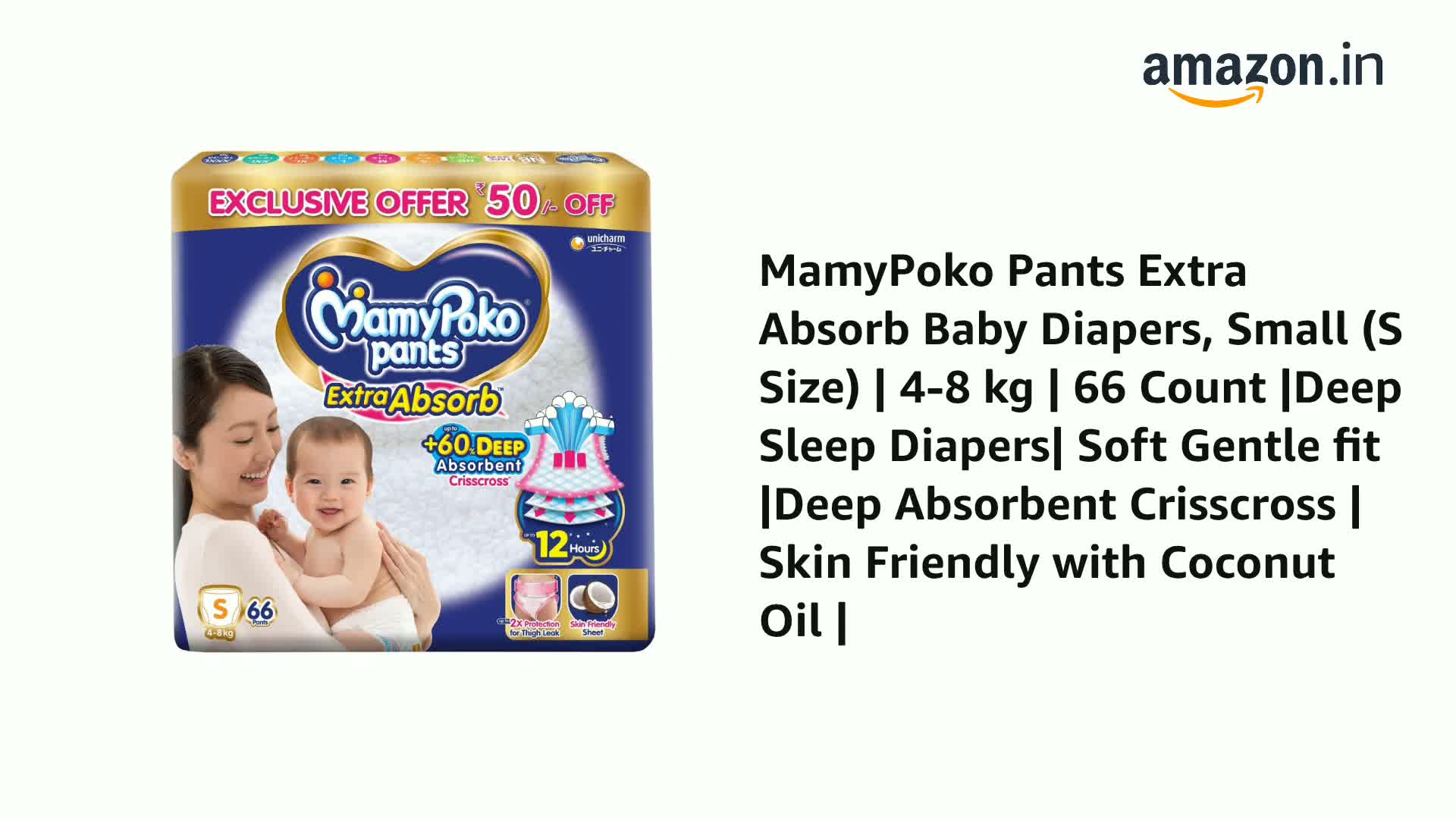 MamyPoko Pants Extra Absorb Baby Diapers, Small (S Size) | 4-8 kg | 66 Count |Deep Sleep Diapers| Soft Gentle fit |Deep Absorbent Crisscross | Skin Friendly with Coconut Oil |