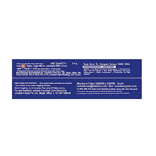 MamyPoko Pants Extra Absorb Baby Diapers X-Large (XL) 5 Count 12-17 kg
