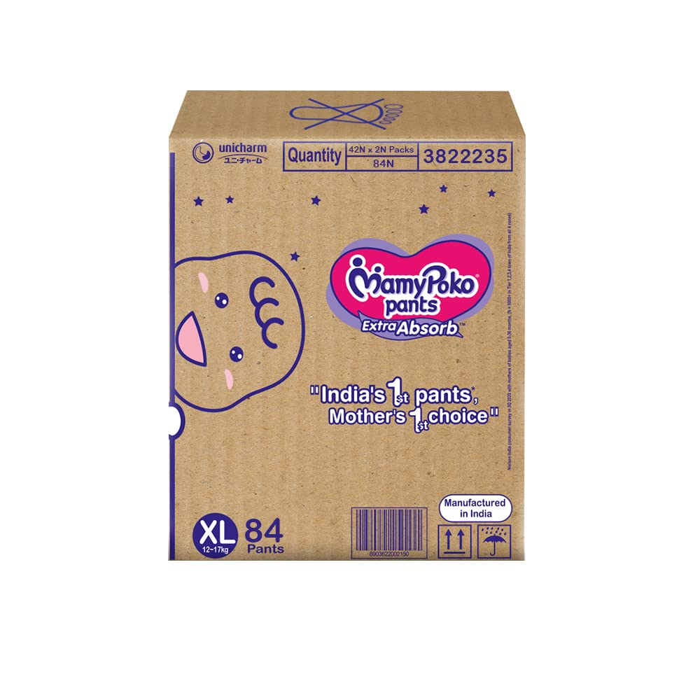 MamyPoko Pants Extra Absorb Baby Diapers, X-Large (XL), 84 Count, 12-17 kg