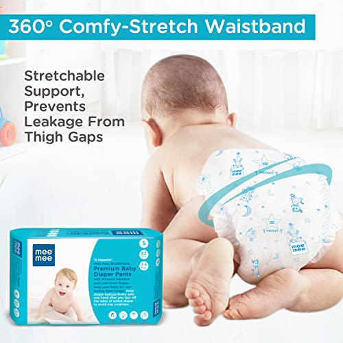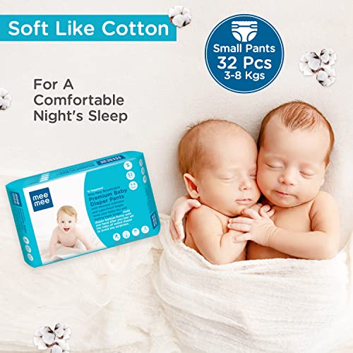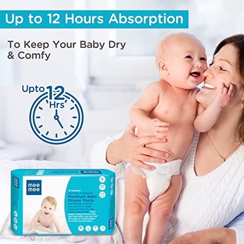 Mee Mee Baby Breathable Premium (S) Size Baby Diaper Pants for babies/Infants/Toddlers with Wetness Indicator and comfortable Leak-Proof Edges, Protection upto 12 hrs (32 Pieces, S Size, 4-8 kg)