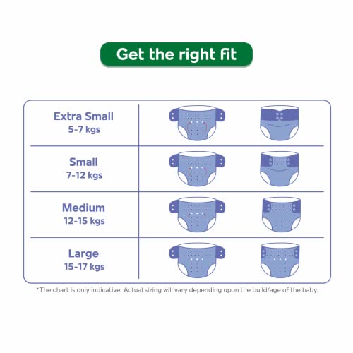• SNUG FIT WITH ADJUSTABLE SNAP BUTTONS: Our Diapers are made to fit the size XS(5-7 kgs) to L(15-17kgs) which can fit a 3 Month old baby to 3 Year Old Toddler. The unique snap button design makes them a good fit for your baby diapers need not be adjusted a