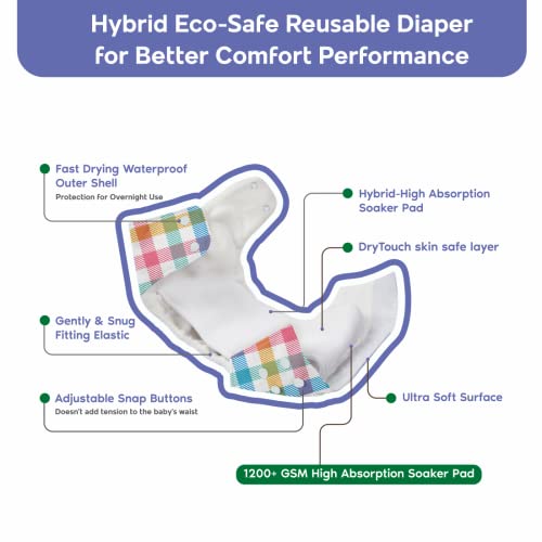 • REUSABLE CLOTH DIAPERS: Designed and developed using only the finest materials to bring you a Quality Nappy experience for Babies & Parents. A premium range of Diapers with Hybrid Eco-Safe for Comfort Performance. Provide the goodness & convenience to you