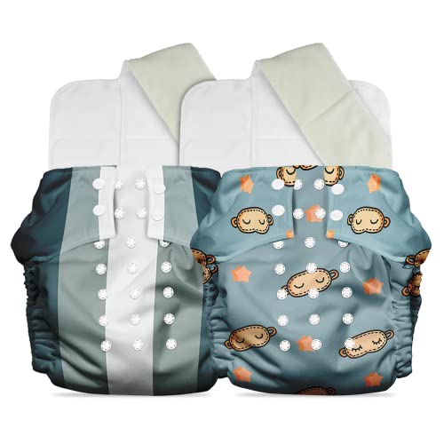 Mother Sparsh Plant Powered Cloth Diaper for Babies-Free Size | Medical Grade Fabric with 100% Organic Cotton | 13 Layer Breathable Soaker With Built-In Booster Pad | Pack of 2 (Domino+Charlie)